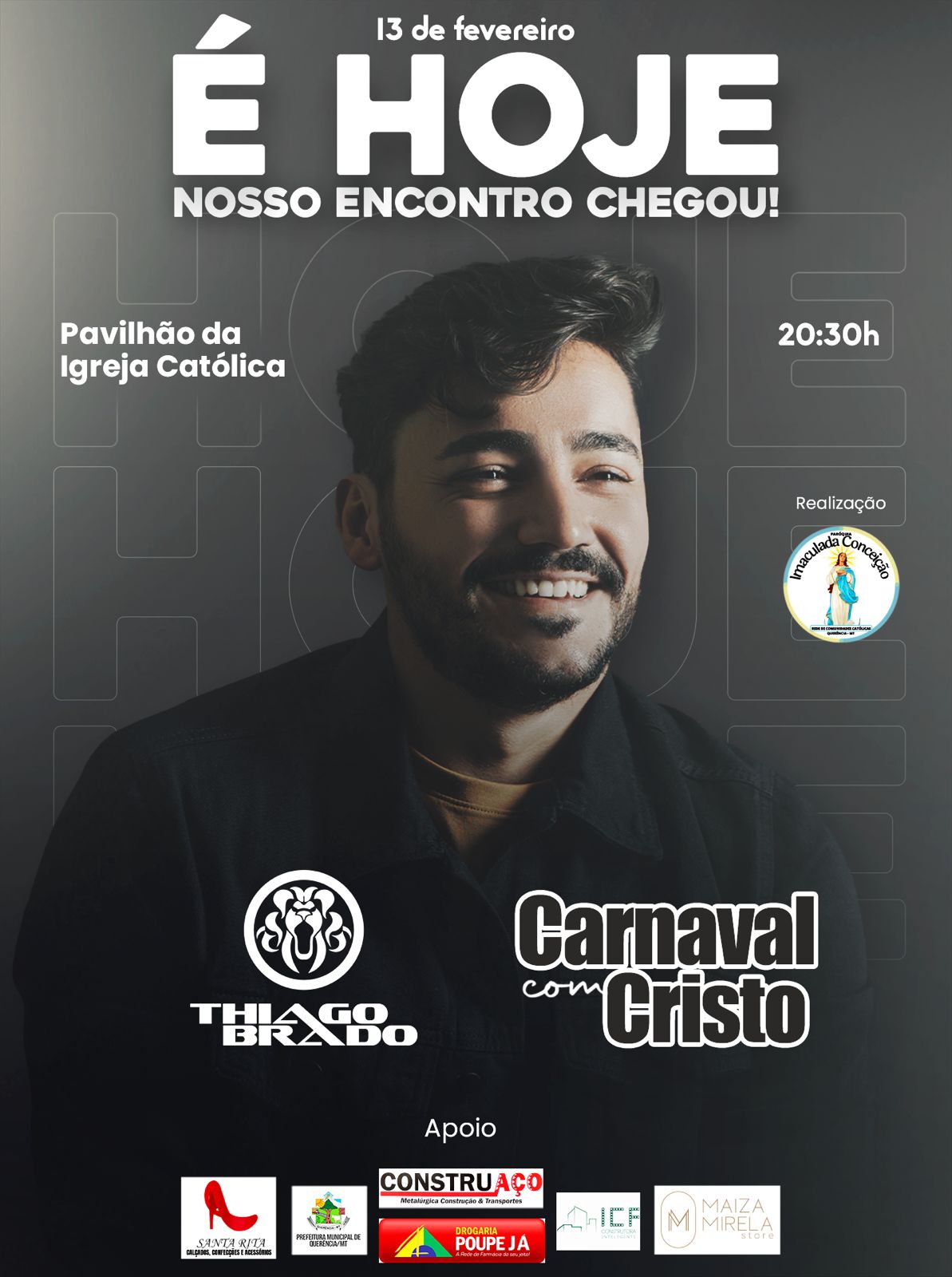 Thiago Brado, reconhecido por suas músicas inspiradoras e mensagens de fé, promete encantar o público com sua performance única. Este evento proporcionará uma oportunidade para os fiéis e amantes da música cristã desfrutarem de um momento de celebração e reflexão durante o feriado.