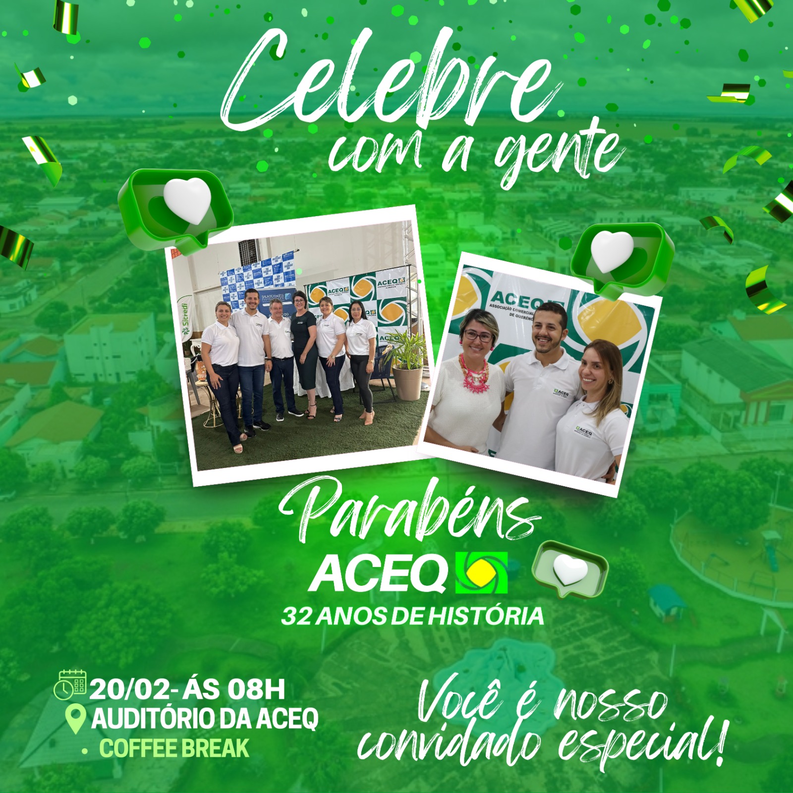 Além disso, para marcar essa data especial, estão sendo desenvolvidas várias programações e iniciativas pela ACEQ, visando colocar à disposição dos associados e do comércio local uma série de benefícios e oportunidades. Destaca-se ainda a presença contínua do primeiro diretor e fundador da ACEQ, Domingos Roberti, que permanece como associado desde o início da instituição, há 32 anos. Sua dedicação e compromisso ao longo do tempo são motivo de orgulho e celebrado com grande alegria por todos os membros da associação.