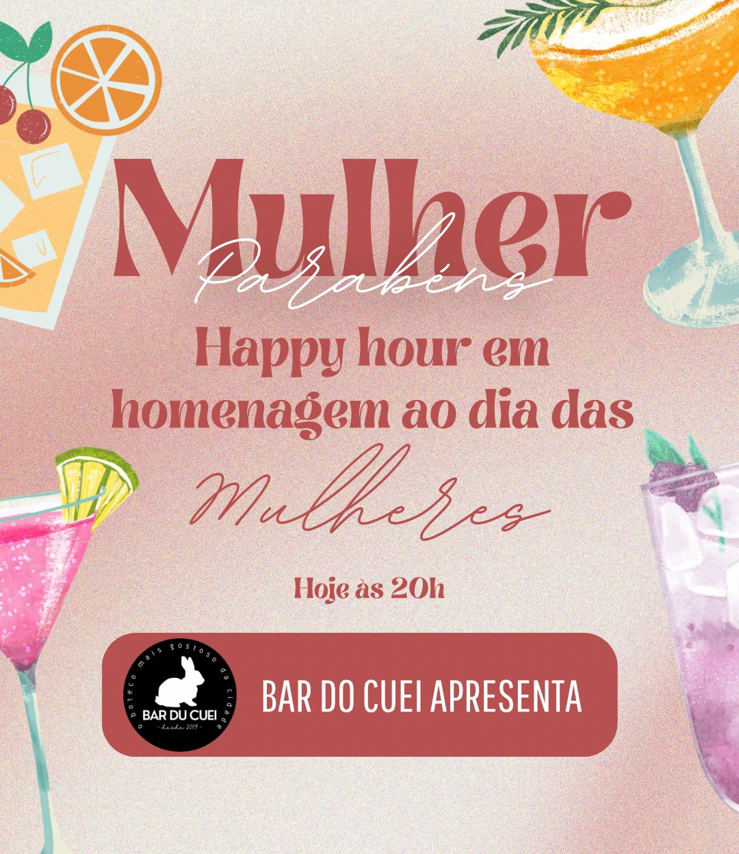Hoje é o Dia Internacional da Mulher e nós do Bar do Cuei queremos celebrar essa data tão importante com todas as mulheres que nos prestigiam diariamente. Por isso, preparamos um happy hour especial em homenagem a vocês!