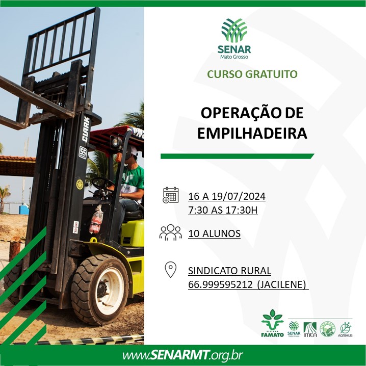 Trata-se do Curso de Operação de Empilhadeira, no período de 16 a 19 de julho, o dia todo.