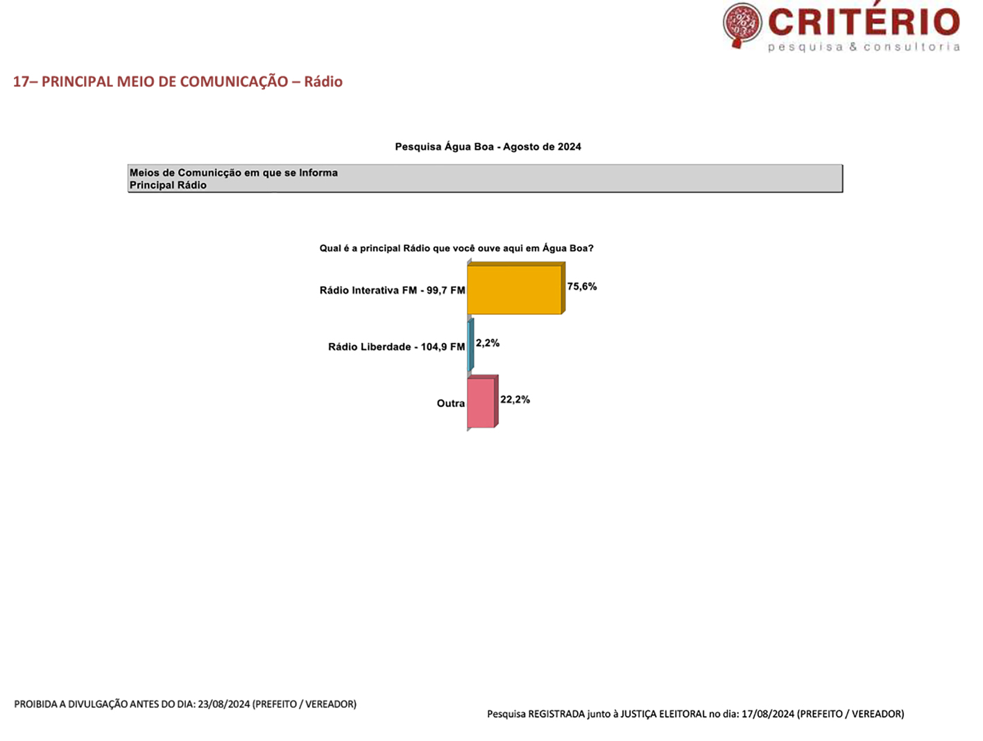 Pesquisa Critério mostra a Rádio Interativa em 1º lugar na audiência em Água Boa