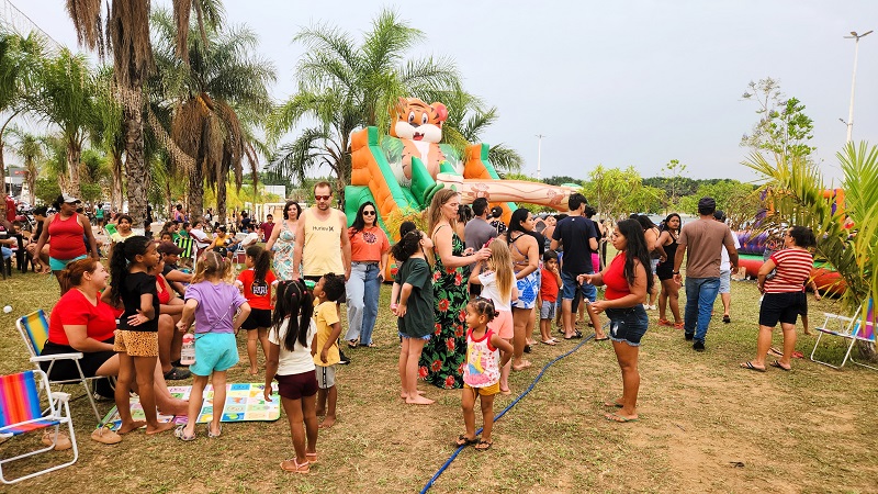 O dia começou com céu nublado e previsão de chuva, mas isso não impediu que as crianças aproveitassem as diversas atividades oferecidas, como brinquedos infláveis, cama elástica e pula-pula, todos supervisionados por profissionais capacitados.