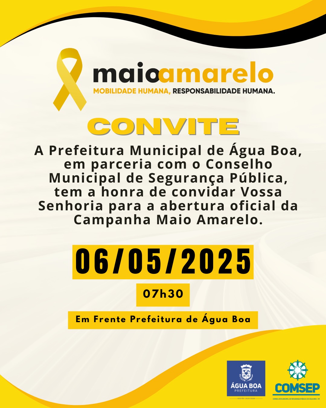 Vem aí a campanha Maio Amarelo 2025ÁGUA BOA - As entidades estão promovendo a campanha Maio Amarelo.