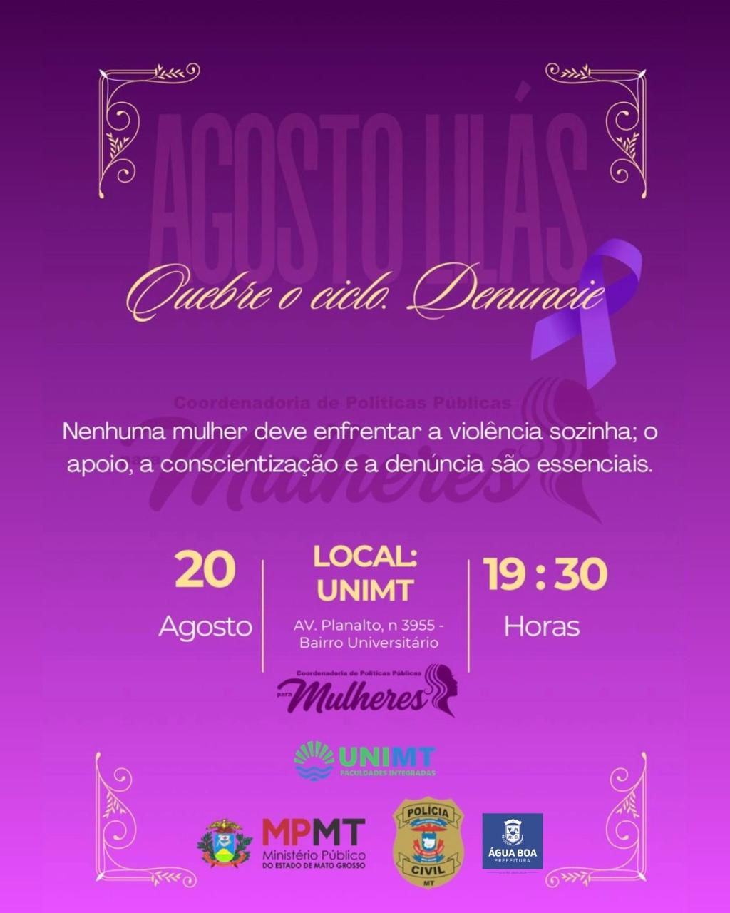 Agosto Lilás - quebre o ciclo, denuncie!
