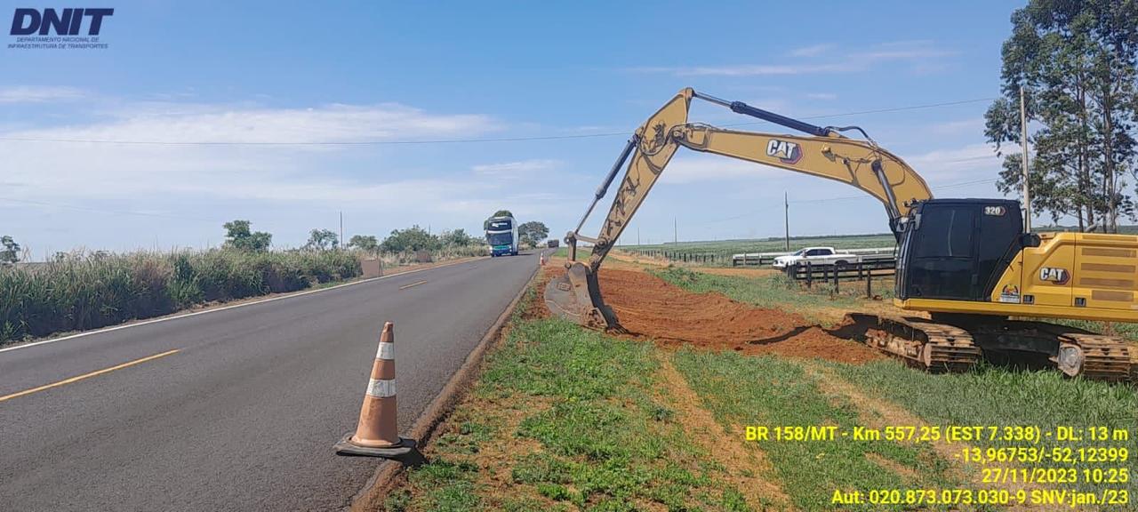 Em Mato Grosso, a BR-158 encontra-se inteiramente coberta com contratos de conservação rodoviária e com boas condições de trafegabilidade. Com relação aos demais questionamentos, como os acostamentos, informamos que a rodovia foi construída com acostamento de um metro (1,00 m) de largura, sendo que estudos de viabilidade técnica, econômica e ambiental (EVTEAs) visando a adequação da rodovia estão em andamento para análise de viabilidade de diversas melhorias, assim como de sua priorização.