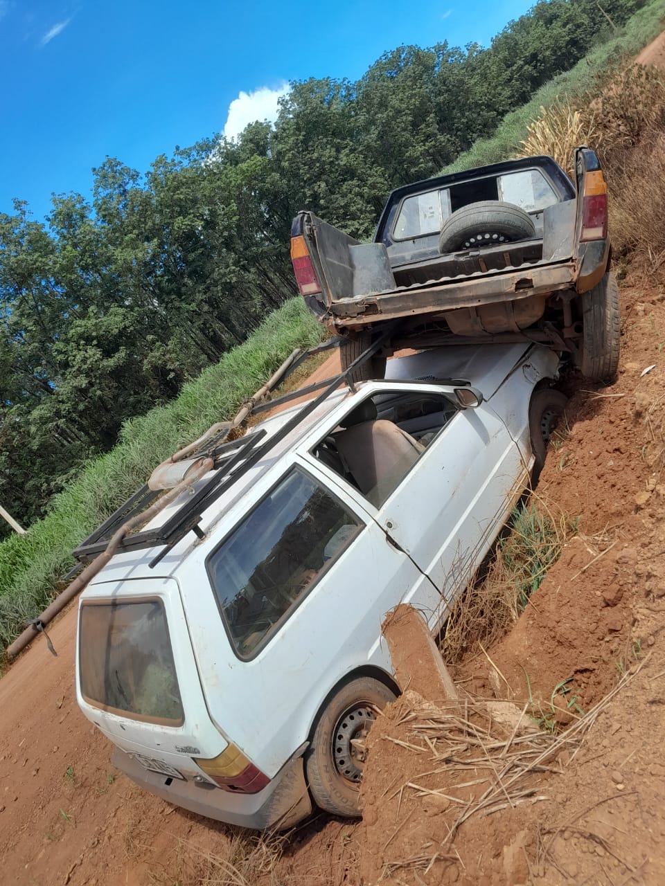 Um Fiat Uno e uma Saveiro transitavam pela estrada, quando ocorreu o acidente.