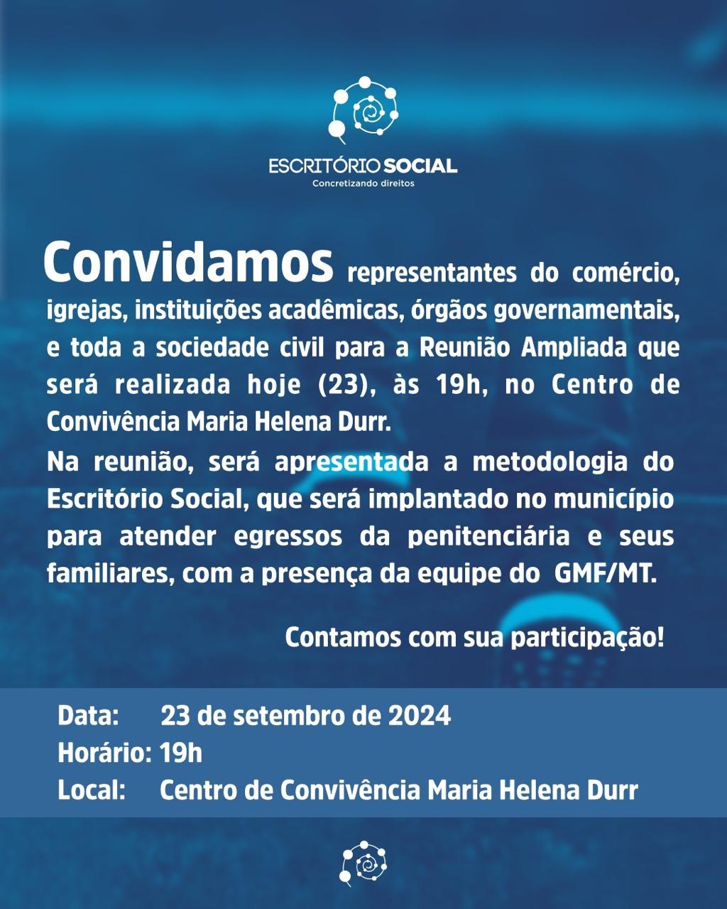 ÁGUA BOA - Acontecerá hoje reunião ampliada da sociedade civil para apresentação da metodologia do Escritório Social a ser implantado no município.