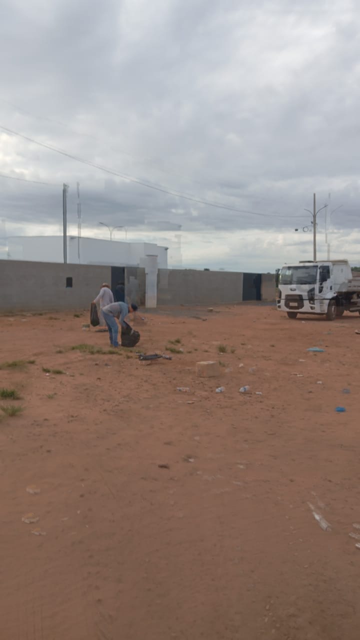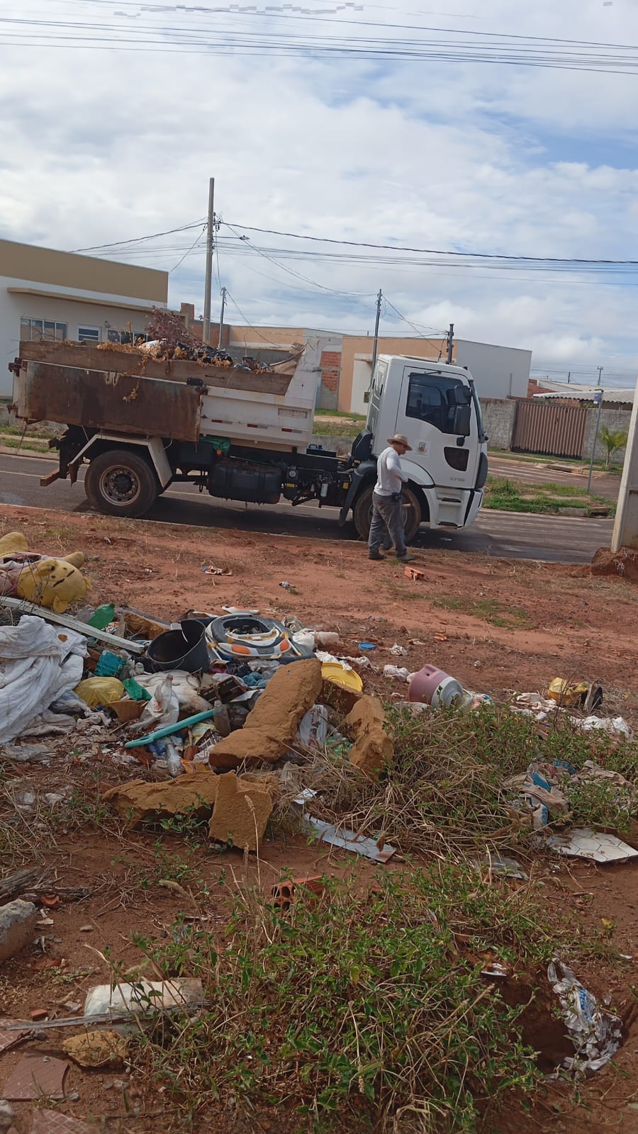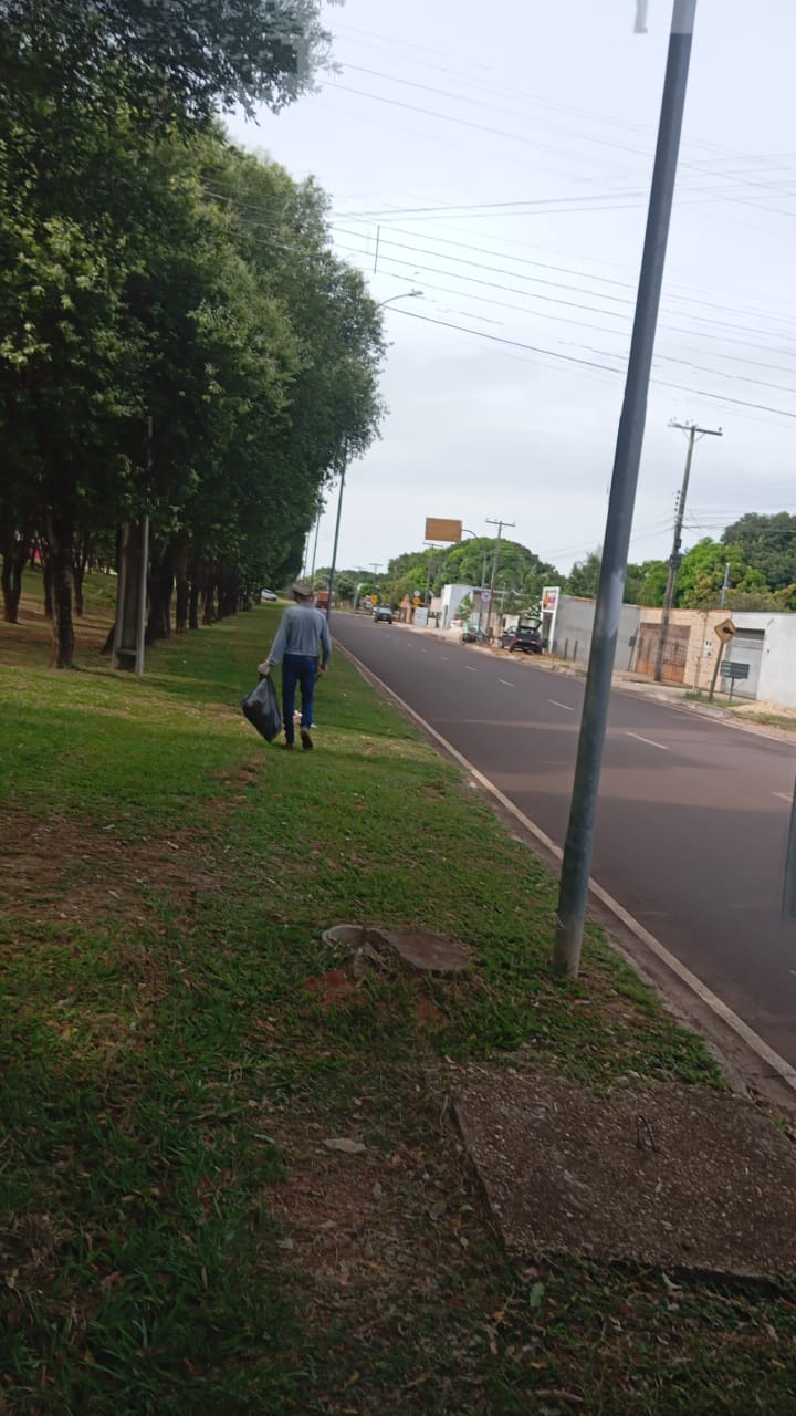 Agora pela manhã, a equipe fez a coleta de lixo jogado nas ruas e canteiros da Av. 50 no Setor Cristalino.