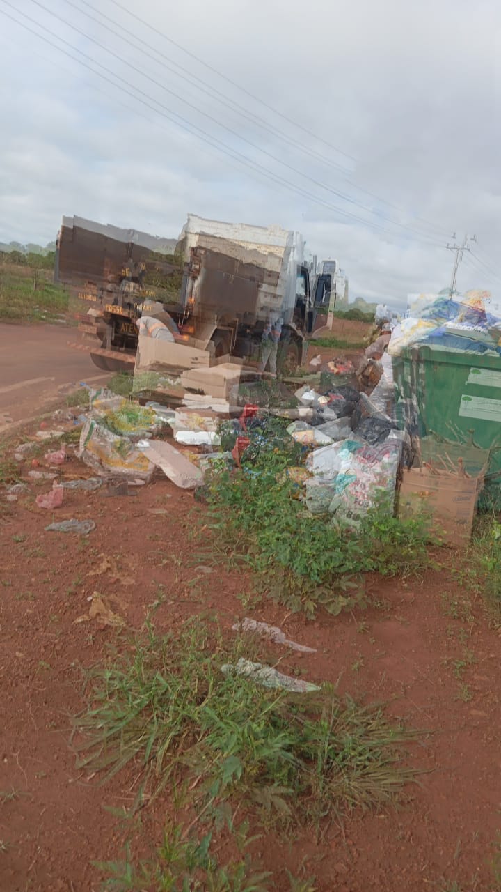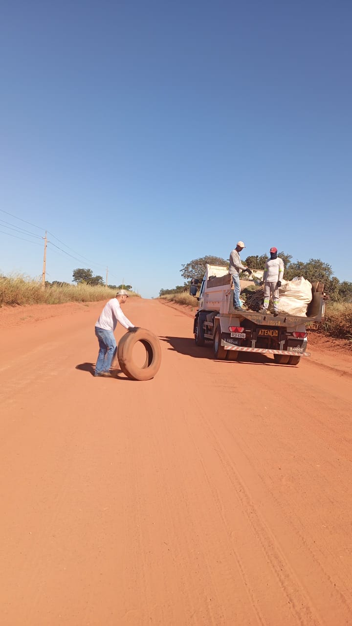 Hoje, as equipes coletaram lixo esparramado na Estrada do Vau que acessa o Setor Universitário.