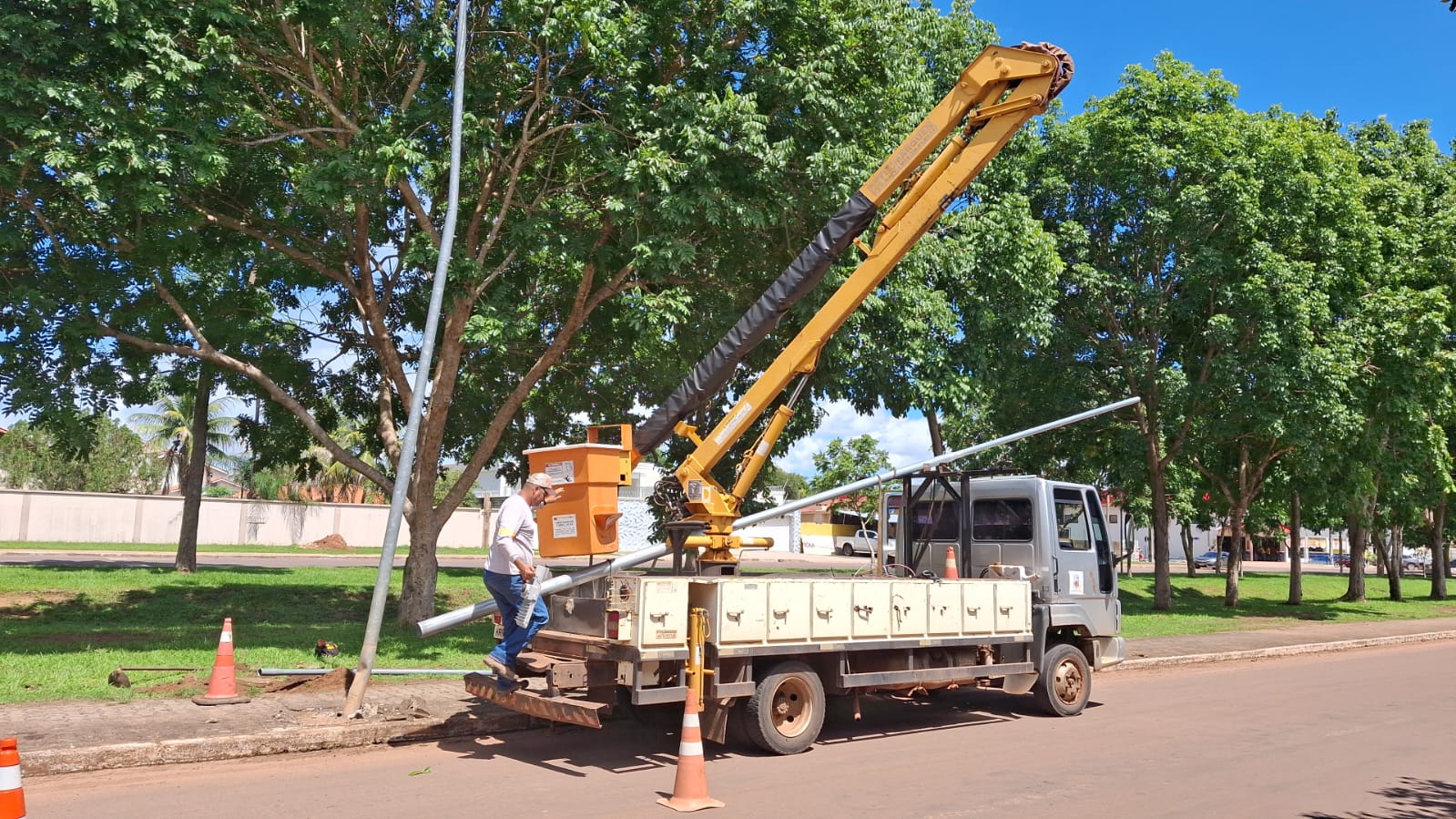Hoje, um dos serviços é o de reparos na rede de iluminação pública em vários pontos da cidade.
