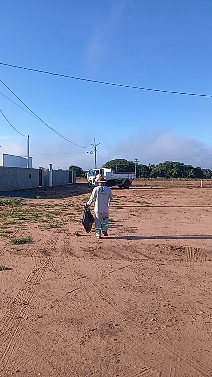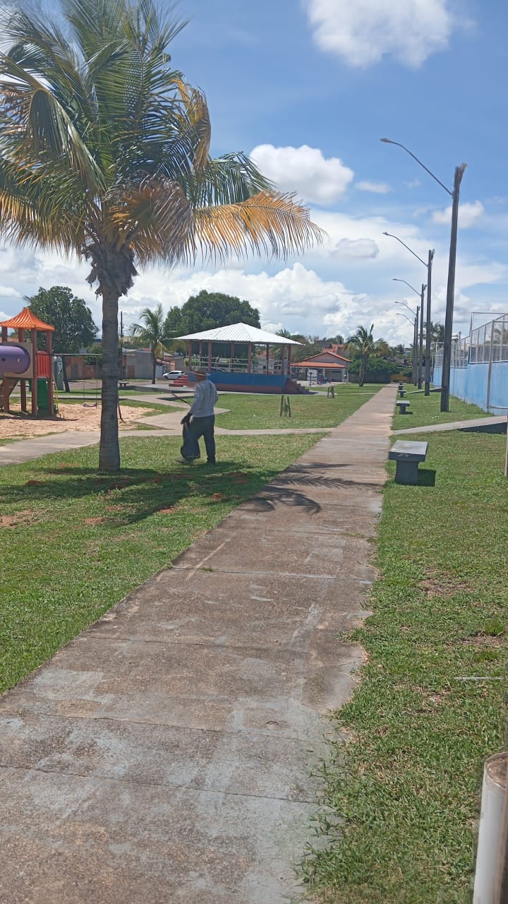 Um dos serviços hoje foi a limpeza na Praça do bairro Cristalino.