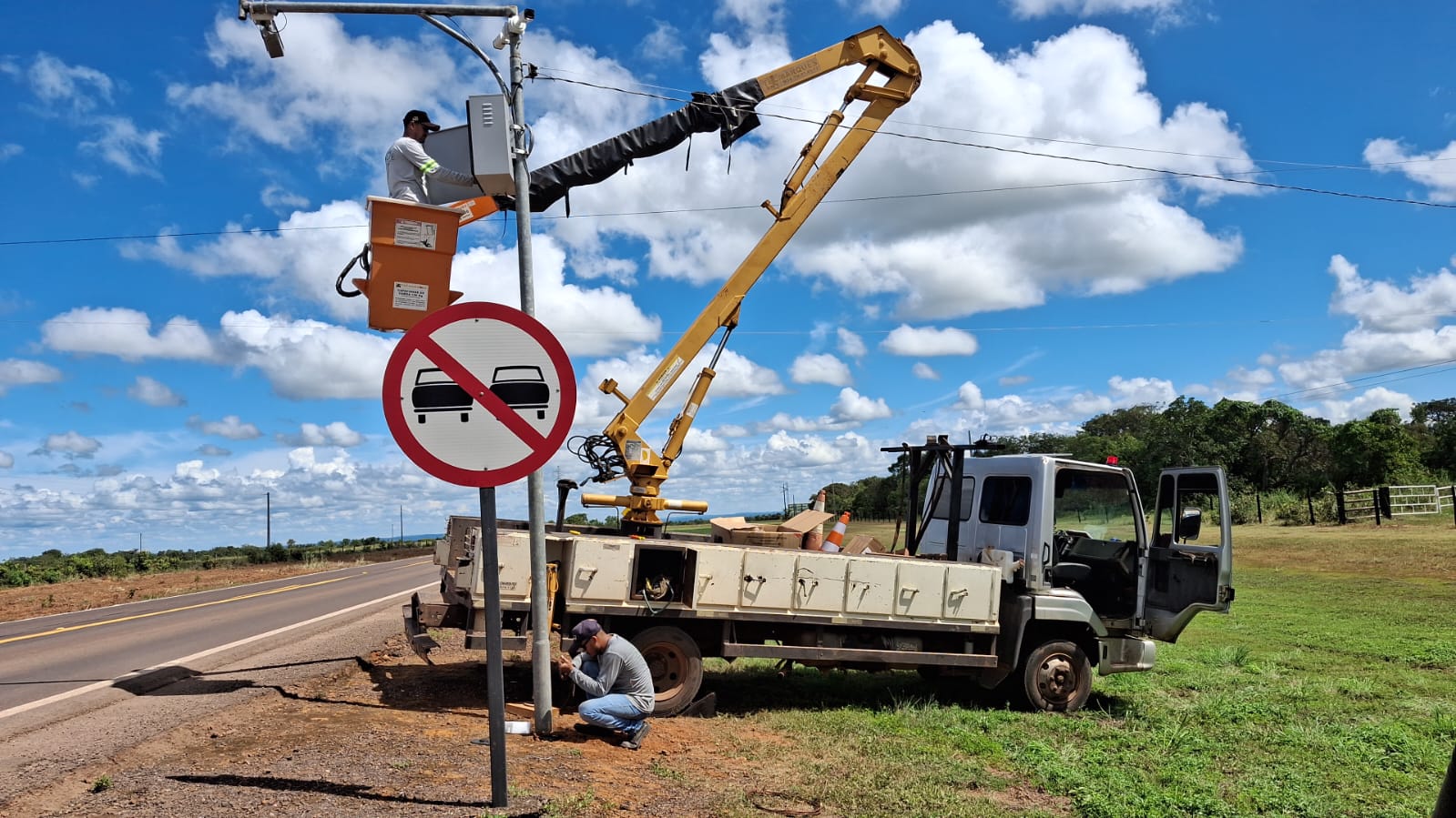Um dos serviços é a recolocação da fiação elétrica na iluminação pública da travessia urbana da BR-158.