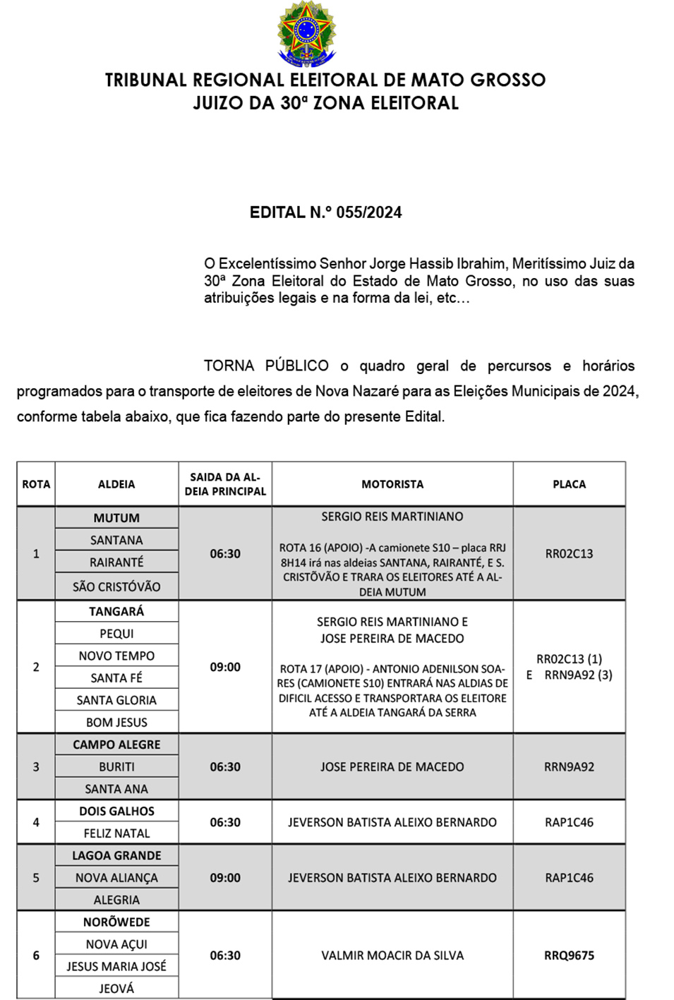 NOVA NAZARÉ - Domingo, 6 de outubro, ocorre a eleição municipal.