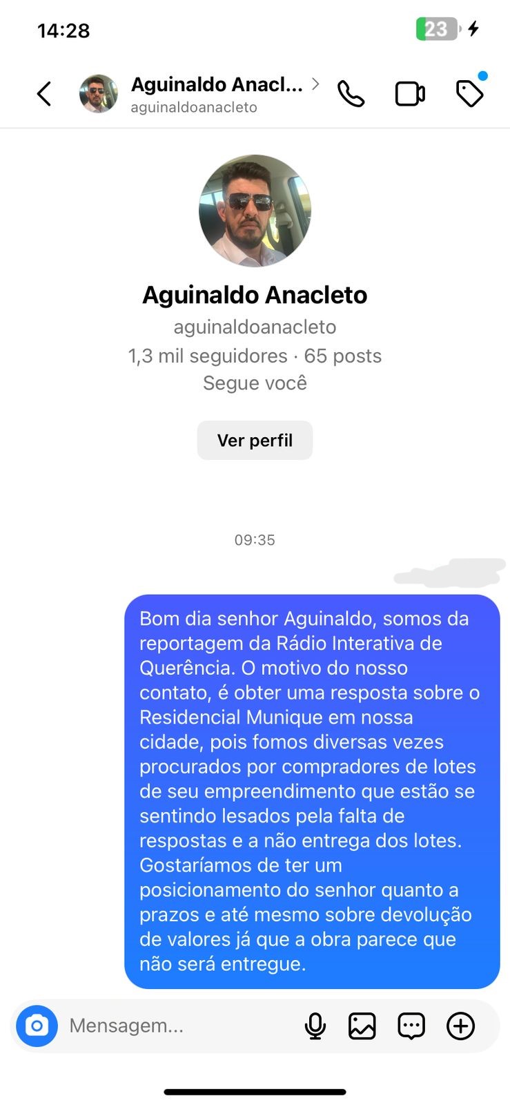 As tentativas da Rádio Interativa FM de obter respostas do empresário Aguinaldo José Anacleto, responsável pelo empreendimento, foram infrutíferas. A falta de informações sobre o andamento das obras, a entrega dos lotes e a possibilidade de reembolso gerou apreensão e revolta entre os compradores.