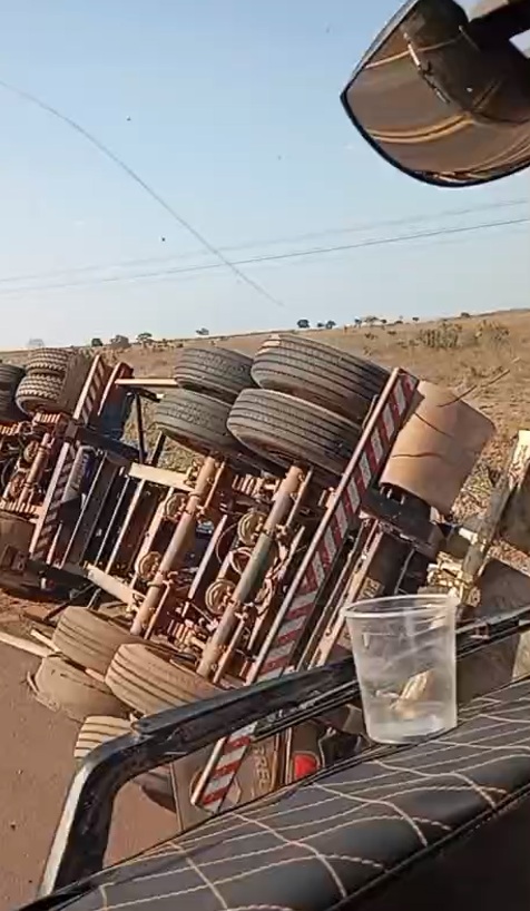 Carreta carregada com calcário tomba e interdita parcialmente a BR-158