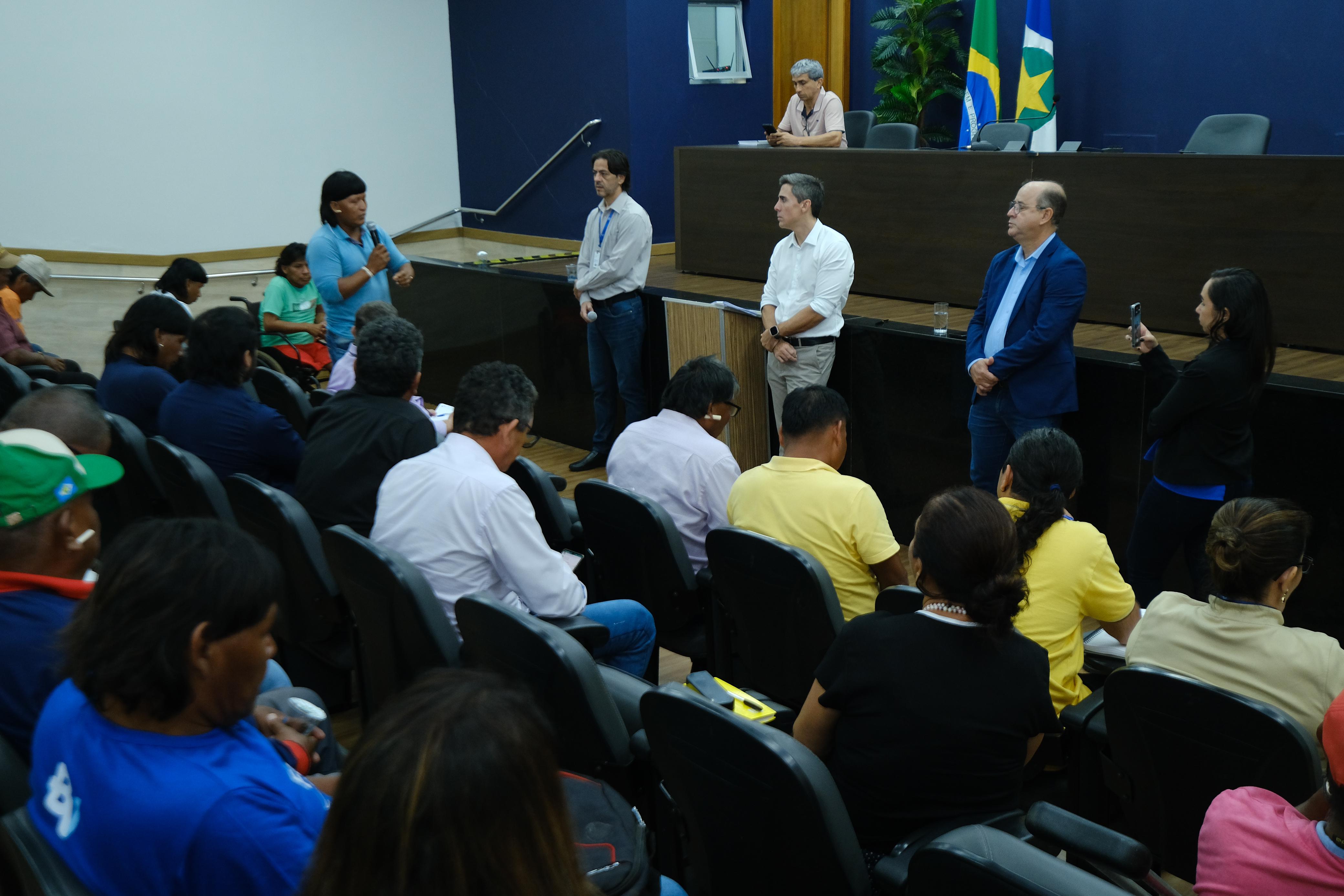 "O Estado pactua convênio com a prefeitura, o governo repassa o recurso para esse núcleo que receberá alunos indígenas. No caso do transporte escolar, será feito mapeamento de rotas e o Estado manda recurso para o município manter o transporte”, sugeriu o secretário de Educação. (Ascom)