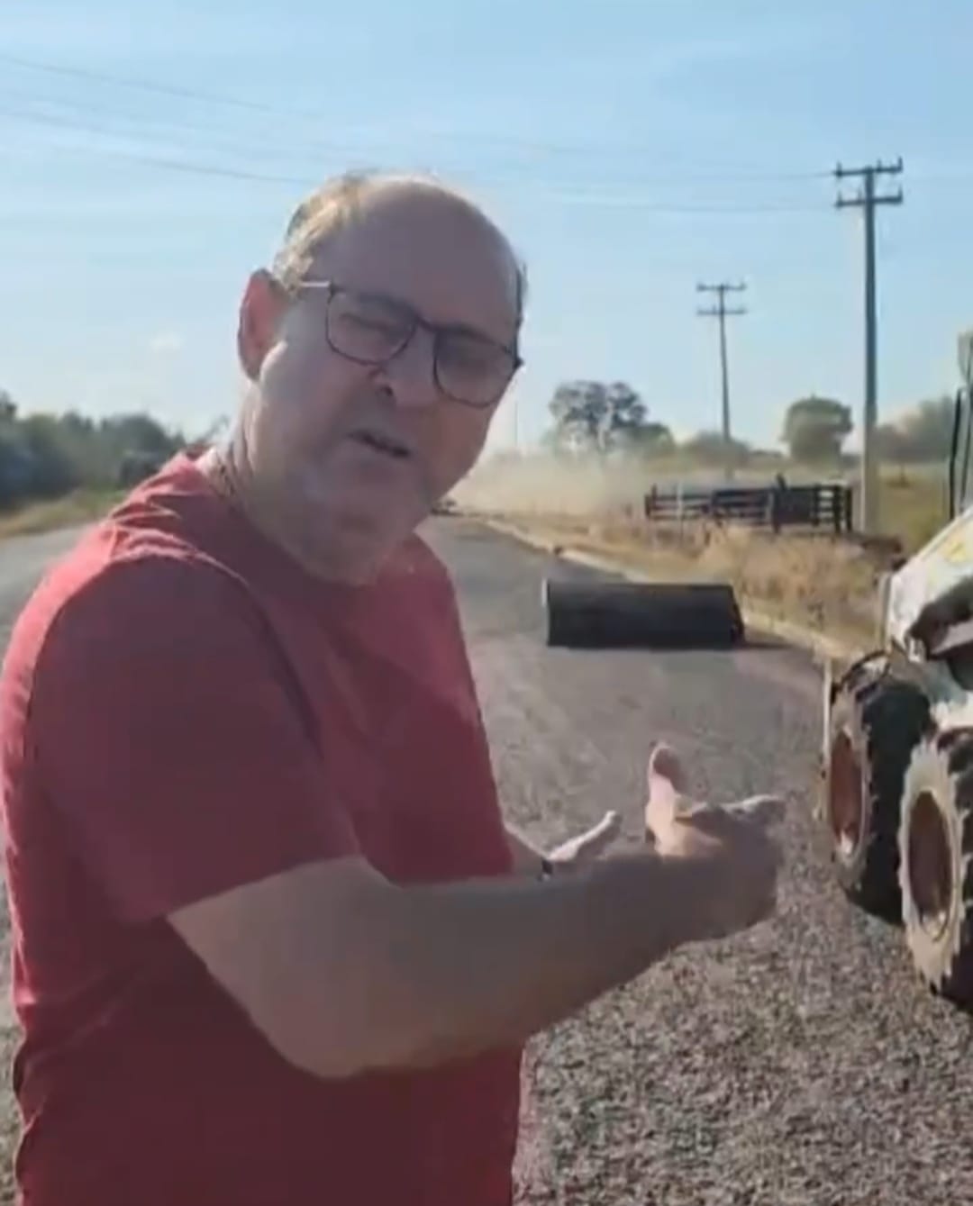 No sábado, Dr. Eugênio esteve no local acompanhando de perto o serviço de recuperação do asfalto da rodovia do calcário.