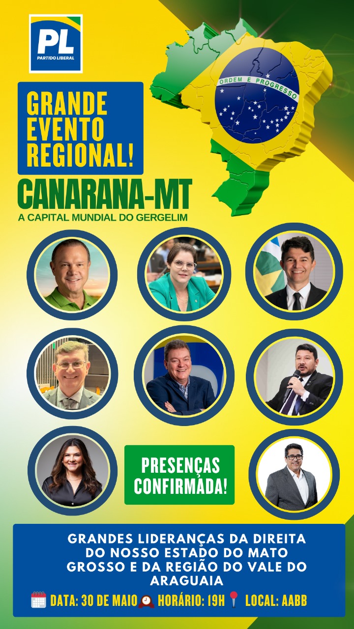 CANARANA - O PL, Partido Liberal, fará encontro regional em Canarana dia 30 de maio.