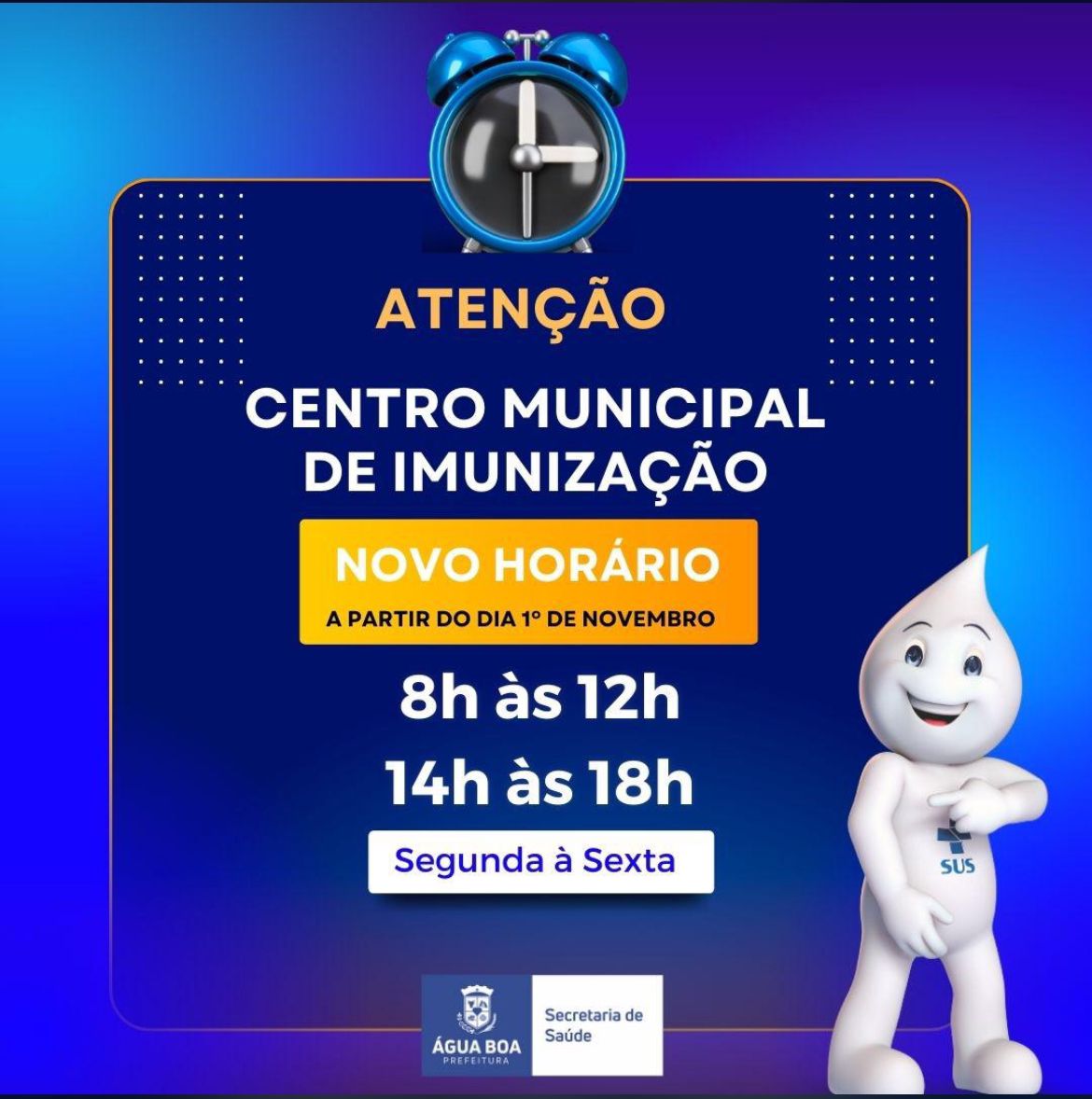 ÁGUA BOA - O Centro Municipal de Imunização funciona em novo horário.