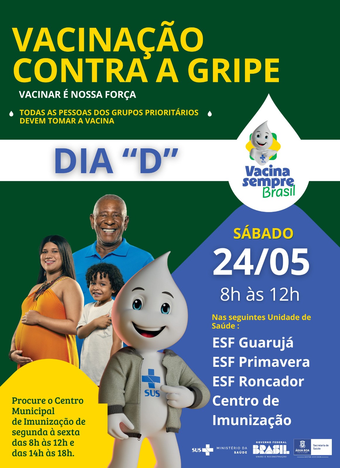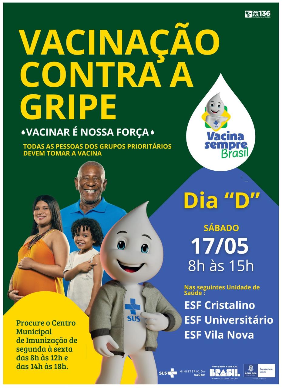 Atualizada dia 21 maio 25 ÁGUA BOA - A Secretaria Municipal de Saúde prepara mais uma etapa 'D' de vacinação contra a gripe influenza.